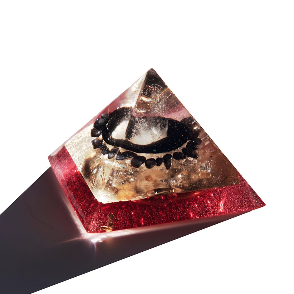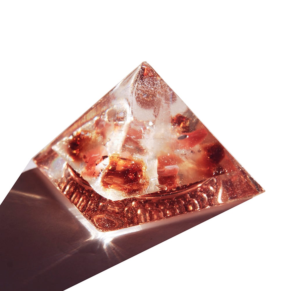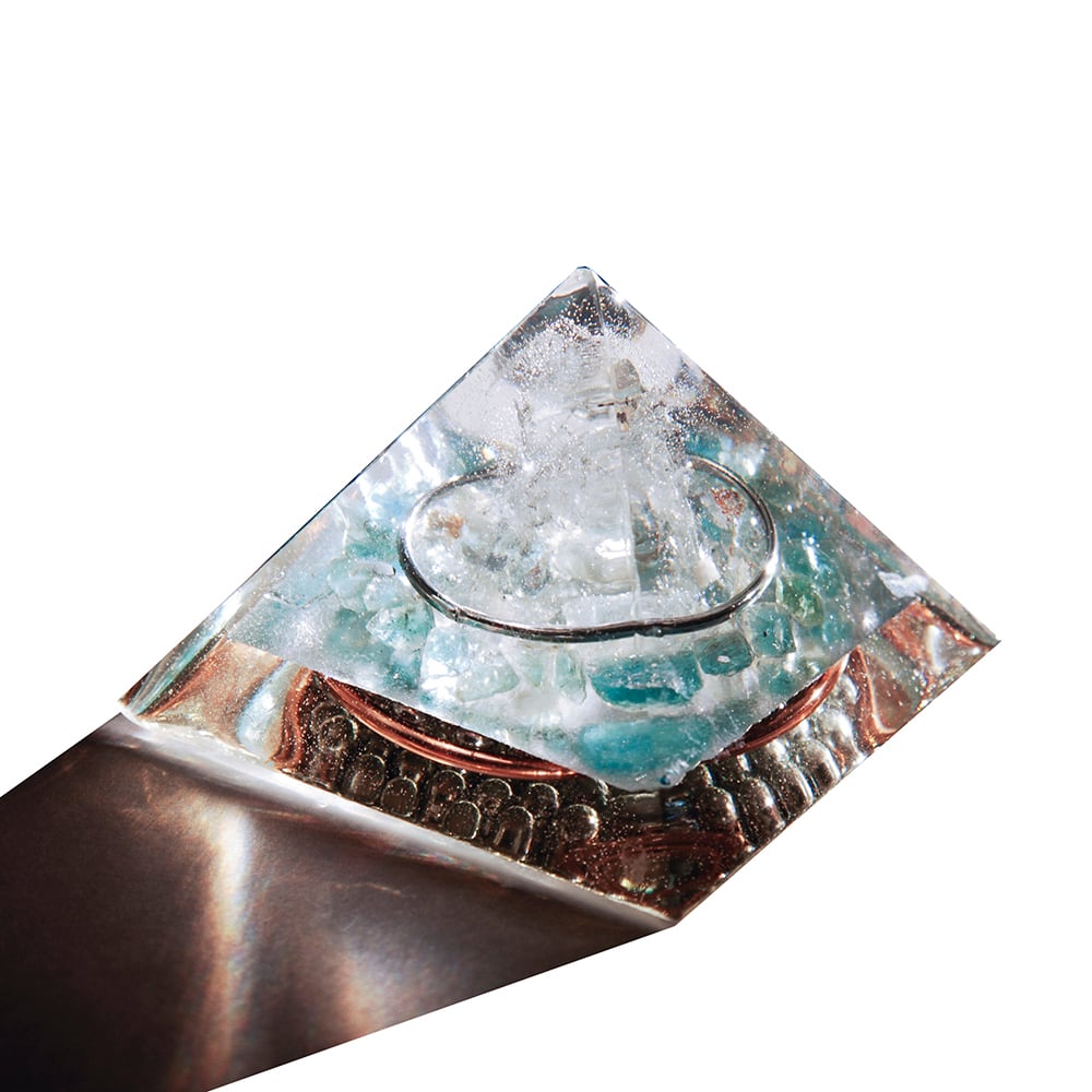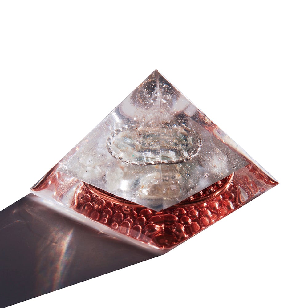 CHAKRA PYRAMID SET - This set includes 7 small pyramids with stones and colors coordinated to the 7 chakra systems in the body. When used base to skin directly on the body, the orgone vortex can activate, enhance, balance and initiate chakra spin correction. Crystal information for each pyramid included. Limited availability.